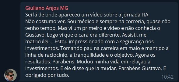 “Quando o Gustavo abriu vagas para seu curso eu paguei pra ver… não me arrependo”. Rodrigo