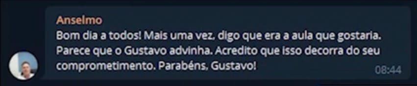 “Quando o Gustavo abriu vagas para seu curso eu paguei pra ver… não me arrependo”. Rodrigo