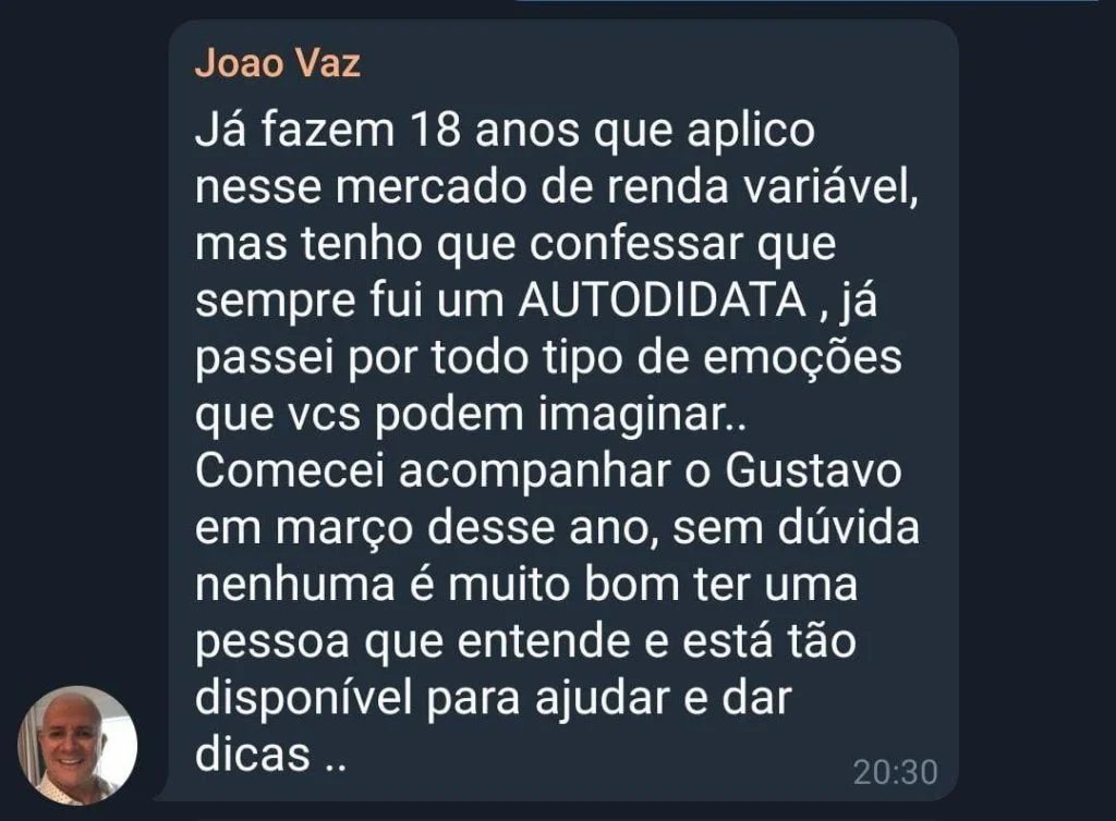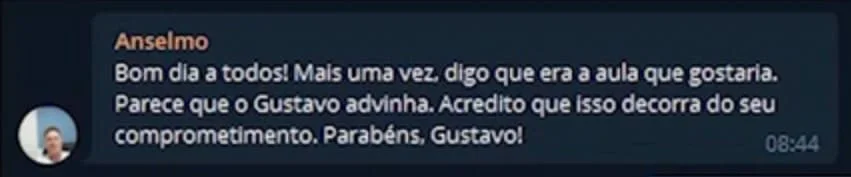 “Quando o Gustavo abriu vagas para seu curso eu paguei pra ver… não me arrependo”. Rodrigo